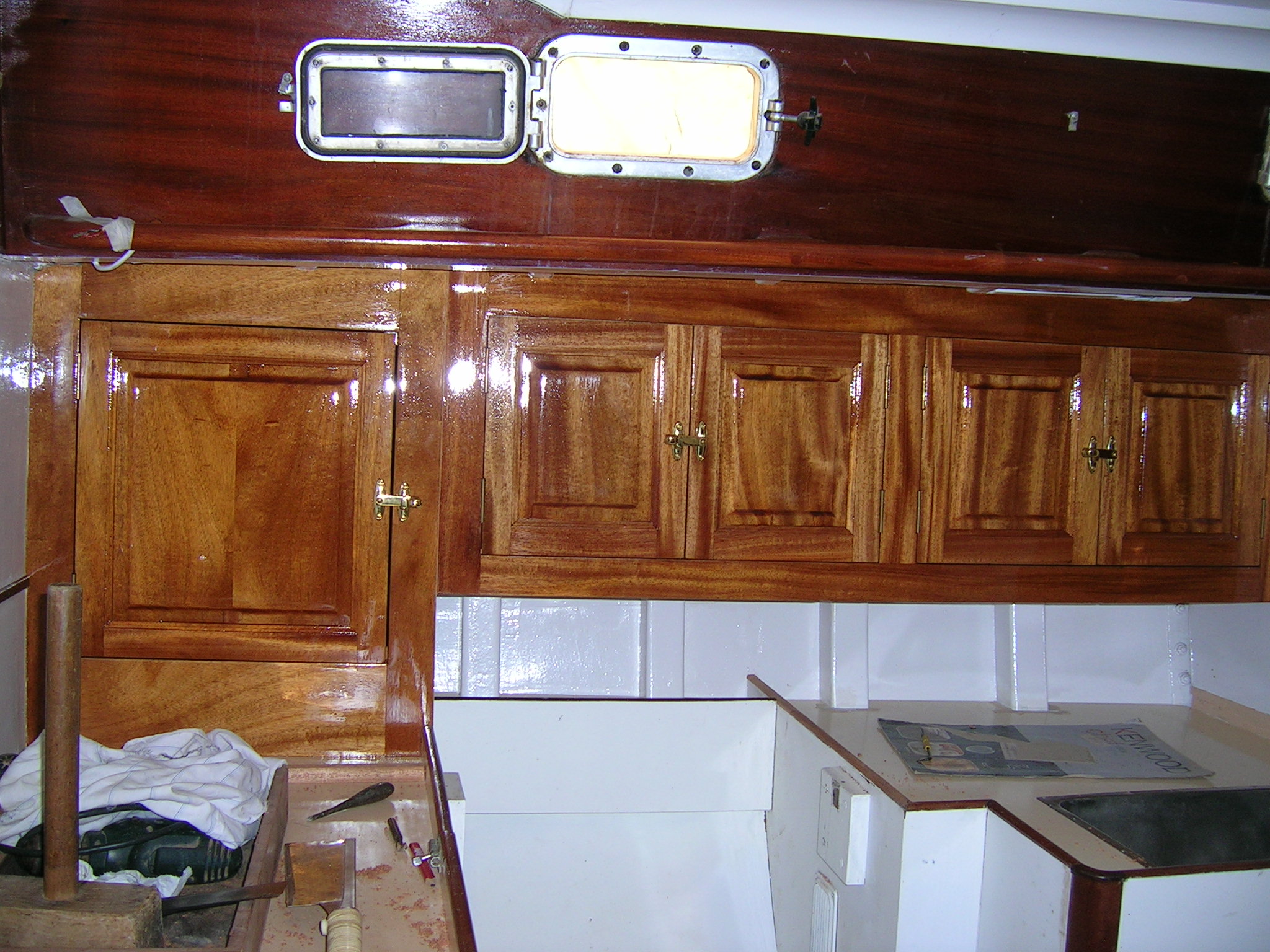 27 mai 2008 - Les portes de placards sont posées. Et, elles ont reçu une première couche de vernis.