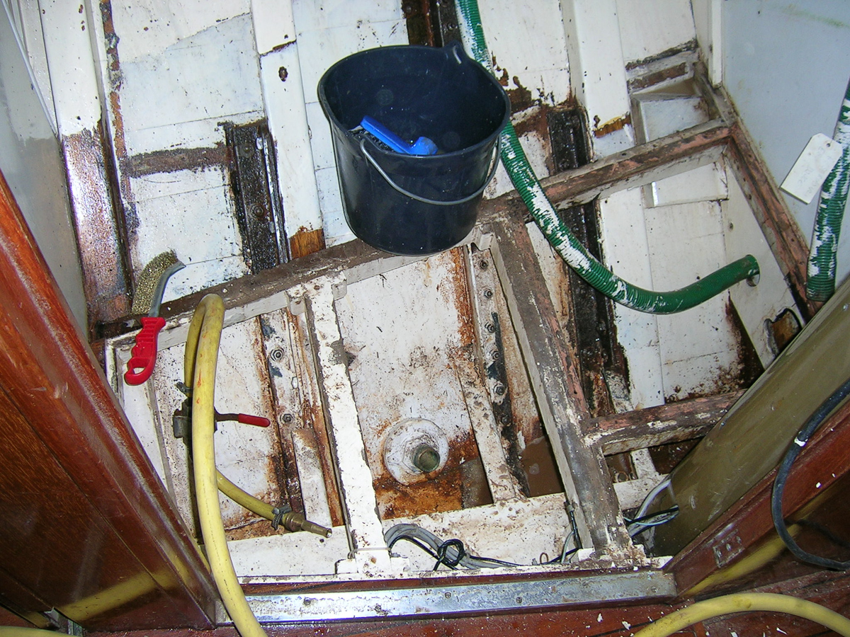 Il faudra reprendre un peu de bois sur la coque, à cause de la rouille des boulons.
