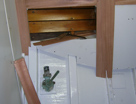 Après nettoyage, un plaquage d'acajou de 8mm sera posé par-dessus la cloison.