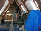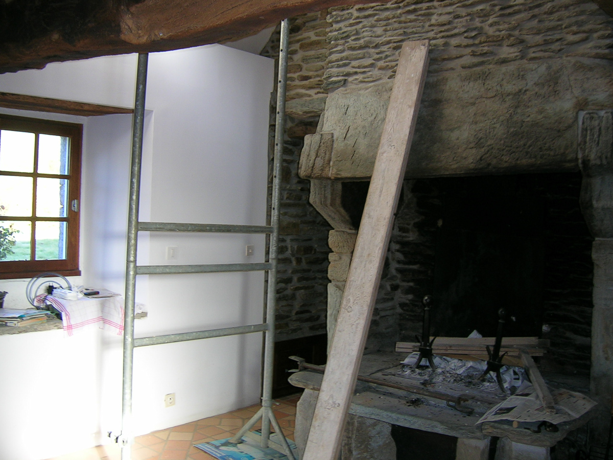 Aussi installé le portique de peintre, échelle, escabeau, bâches. Le peintre en bâtiment, que je suis, va se mettre au travail.