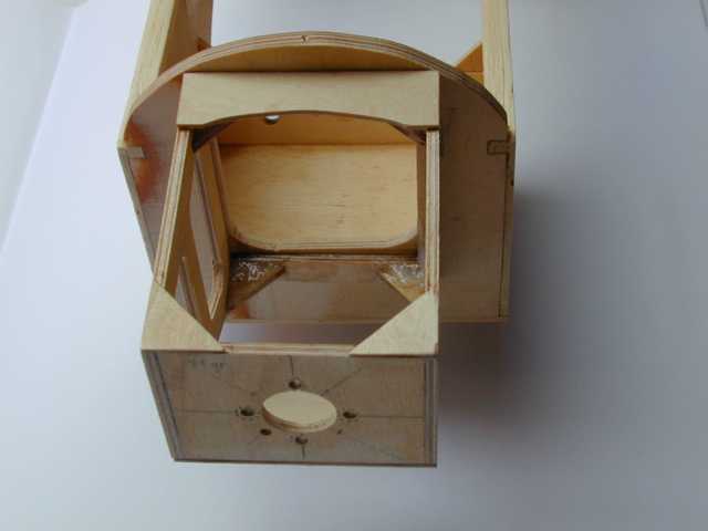 cela vibrait légérement pour corriger j'ai mis des renforts en CTP 10/10 sur le dessus et dessous des équerres en CTP 30/10 en angle noyant les vis et des baguettes triangles en balsa tenant les cotés à l'avant. Voir la photo ci-dessous |