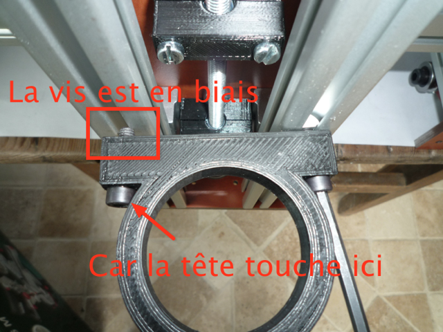 la tête de vis bloquée à droite ne permet pas de décaler à gauche le pas de vis.