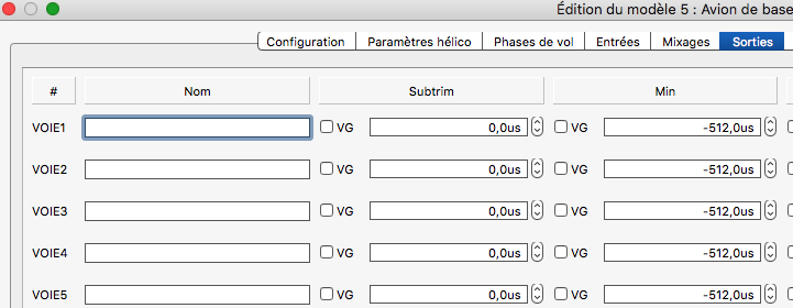 Les définitions des variables globales se font dans l’onglet « Phases de vol » ou dans « Éditer paramètres radio ». Un onglet directement dans « Édition du modèle » m’aurait évité de chercher où cela se trouve.